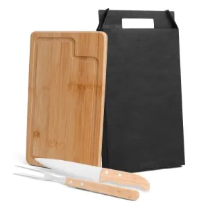 CONJ. PARA CHURRASCO EM BAMBU / INOX / MADEIRA - 3 PÇS.